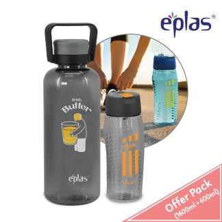 EPLAS OFFER PACK 2 In 1 750+1000ml Water Bottle Set, Drinking Tumbler, Botol Air, BPA Free, EGD-750BPA/EGS-1000PP