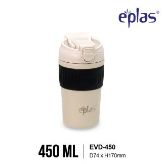 EPLAS THERMAL 450ml Dual Use Lid Vacuum Cup W/Flip Silicone Straw,Non-Slip Travel Mug,Coffee Cup,Cawan Kopi,EVD-450