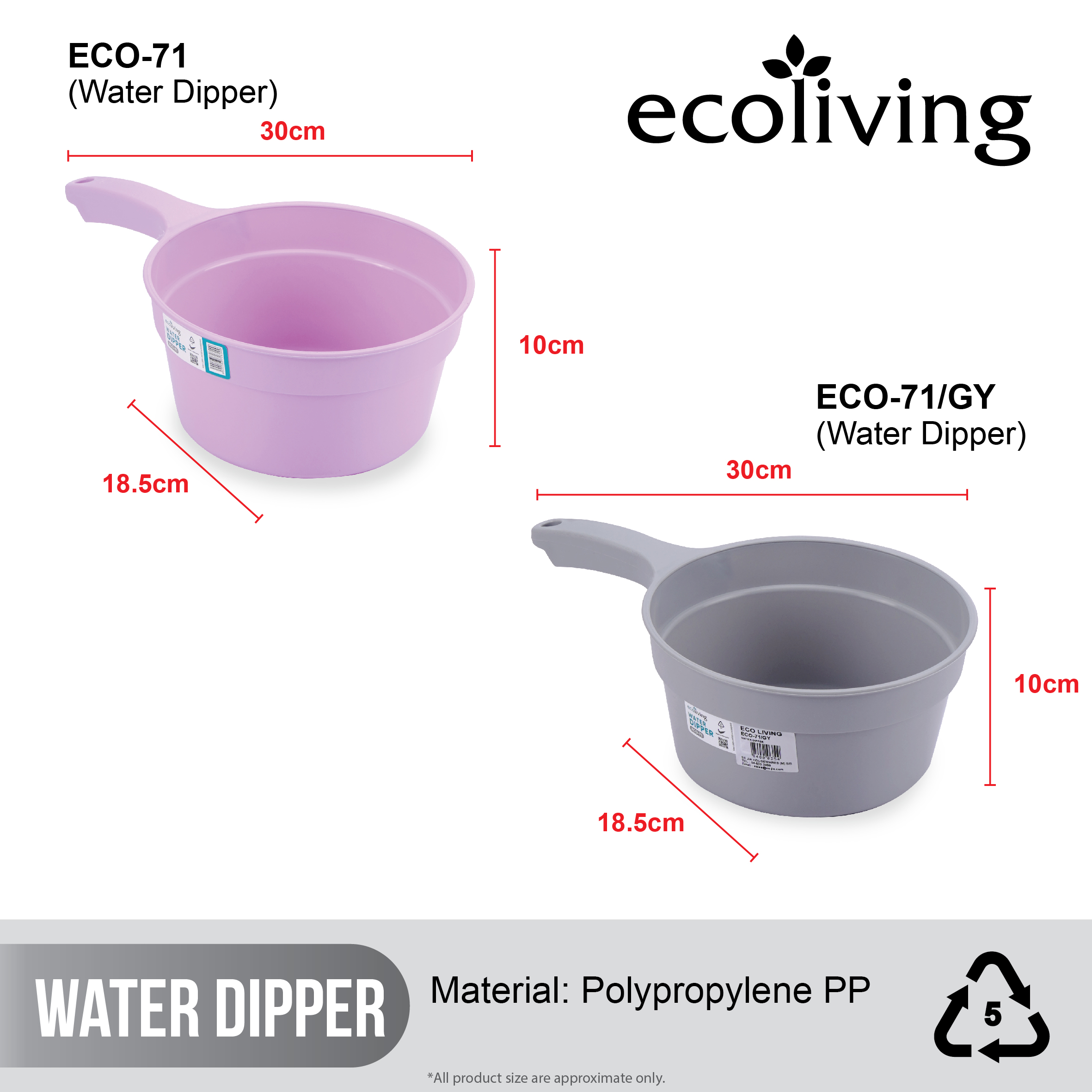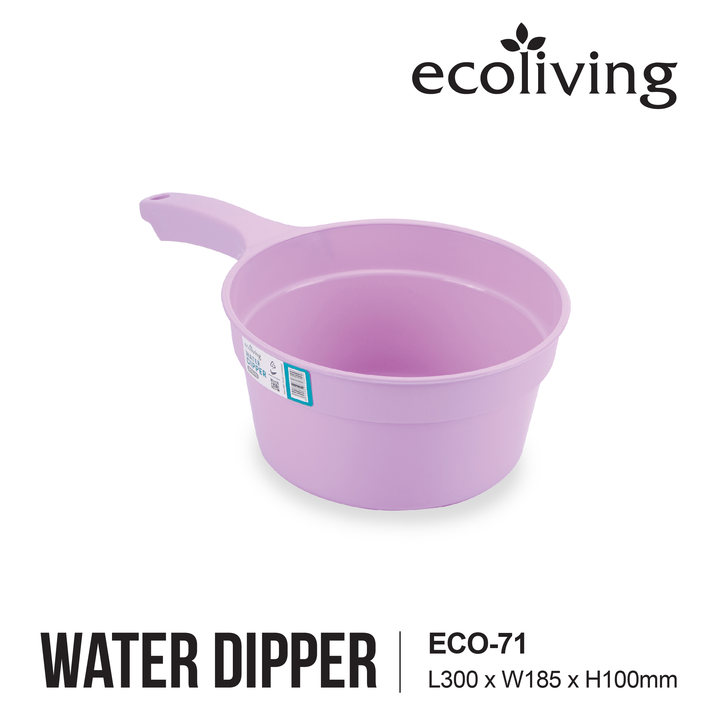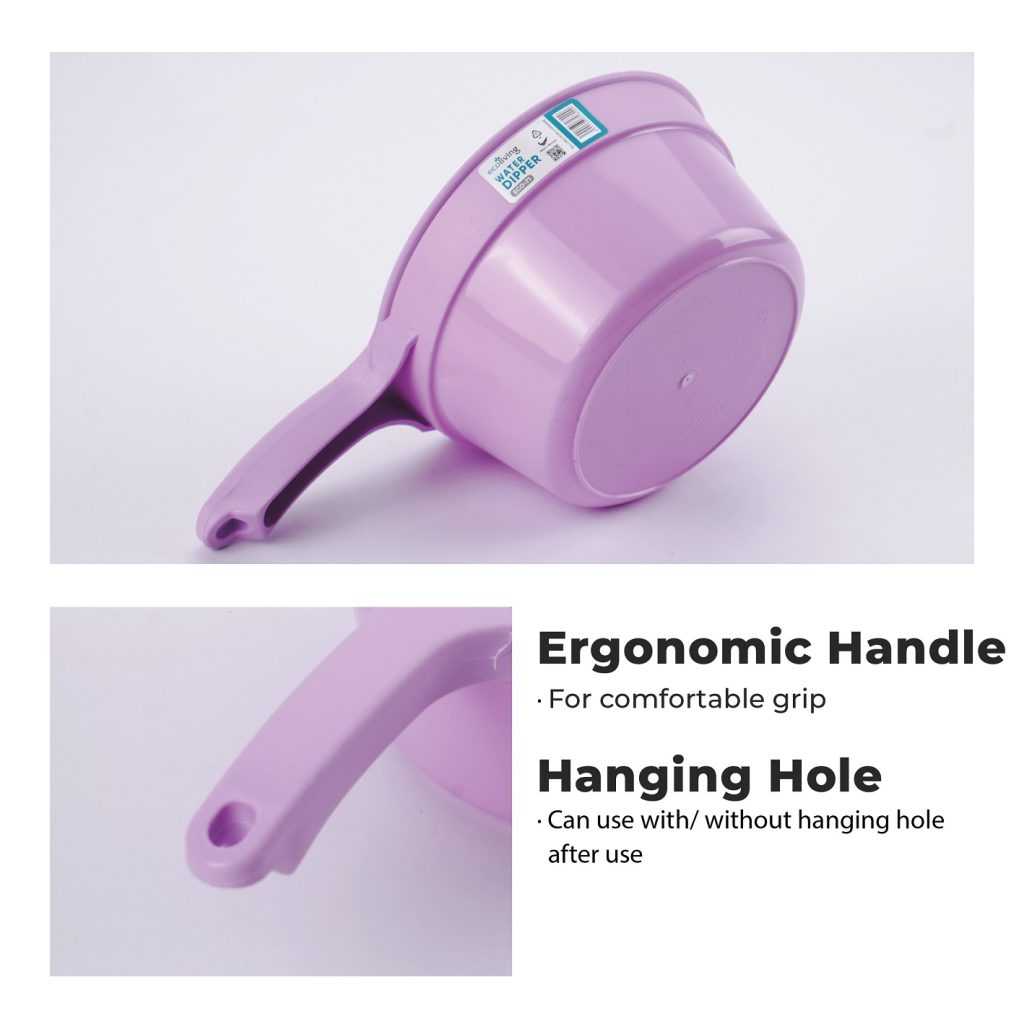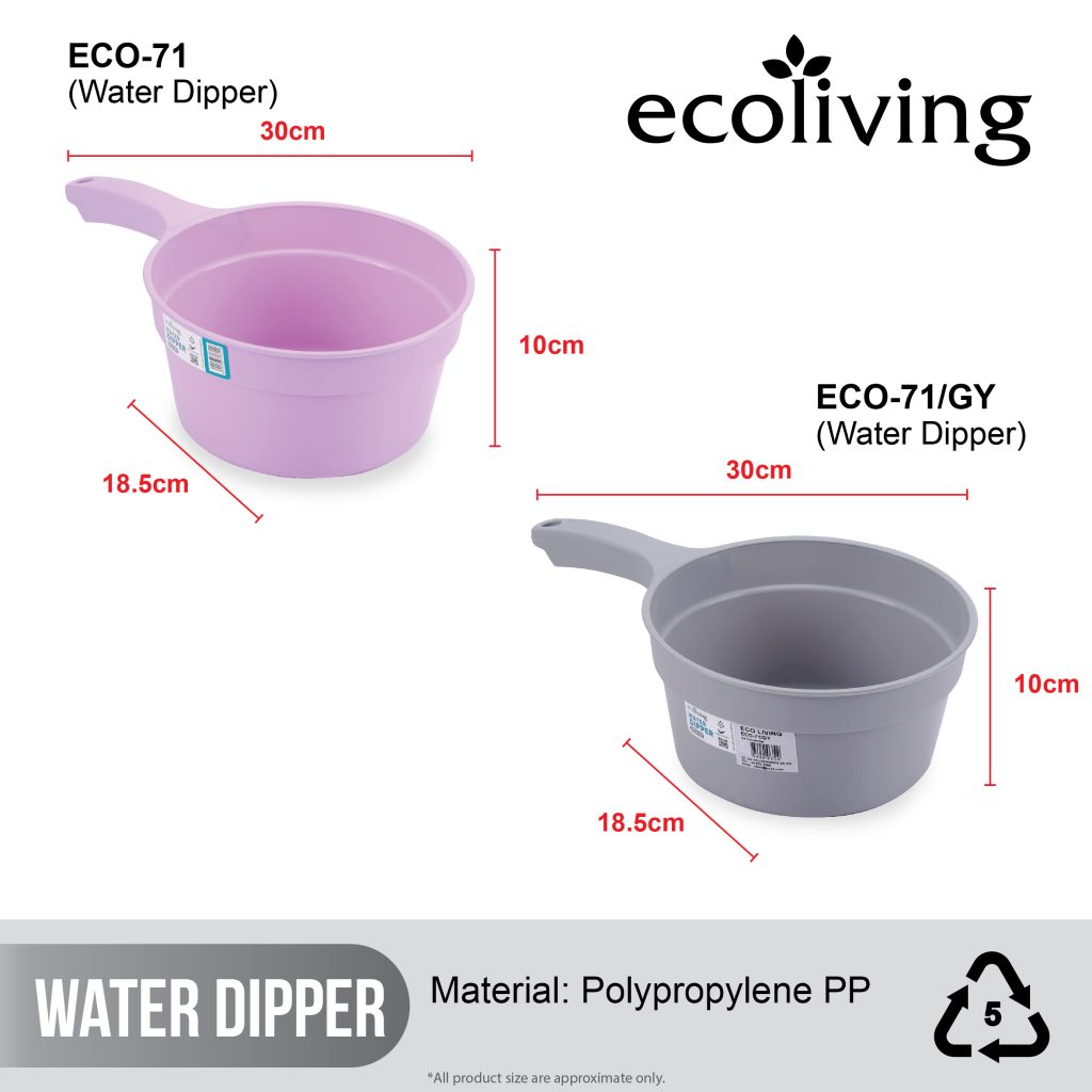 ECO LIVING Bathroom Water Pail Tub W/Heavy Duty Hanging Hole&Handle,Ladle Dipper,Gayung Mandi,ECO-71, ECO-72, ECO-73