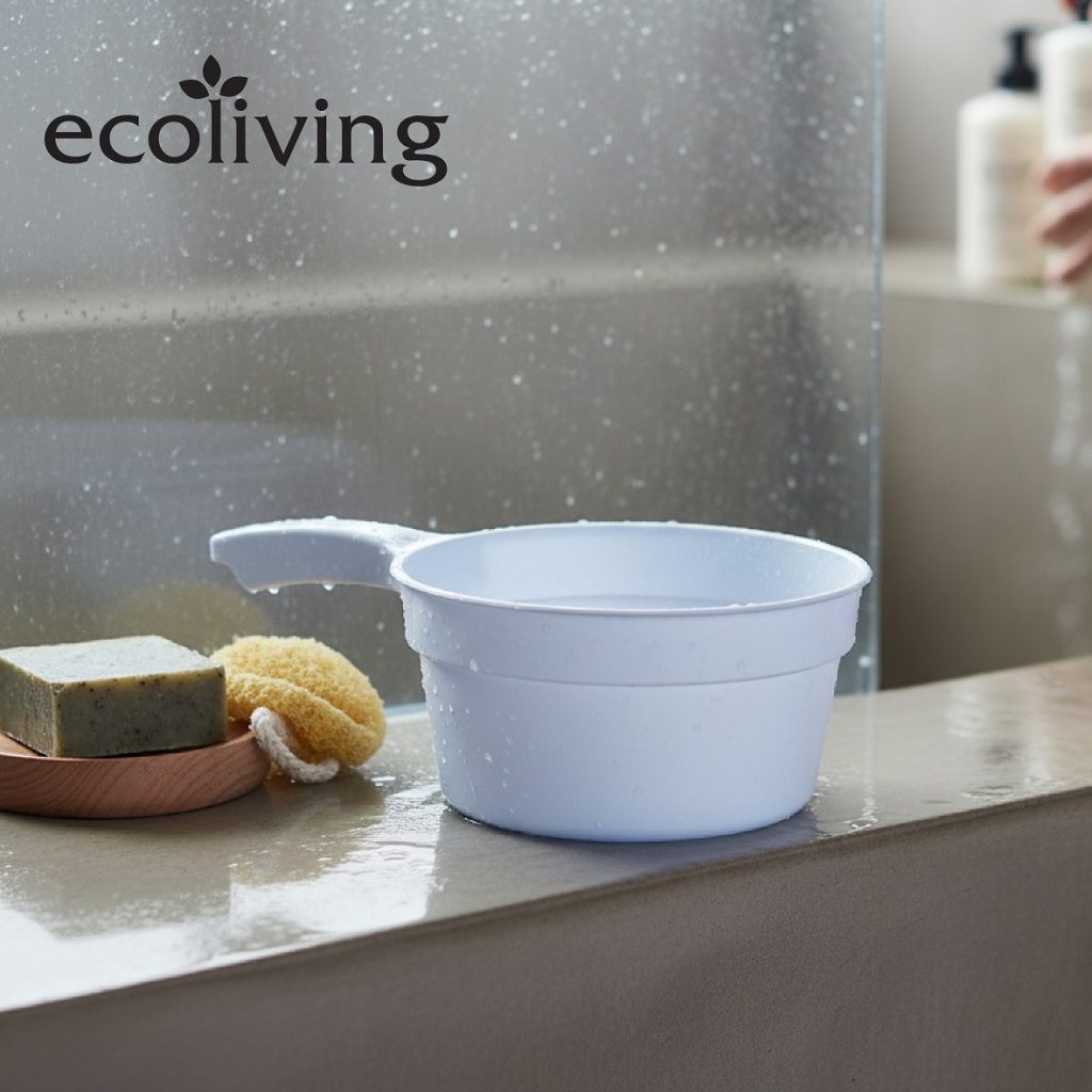 ECO LIVING Bathroom Water Pail Tub W/Heavy Duty Hanging Hole&Handle,Ladle Dipper,Gayung Mandi,ECO-71,ECO-72,ECO-73