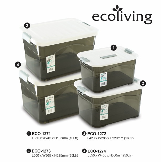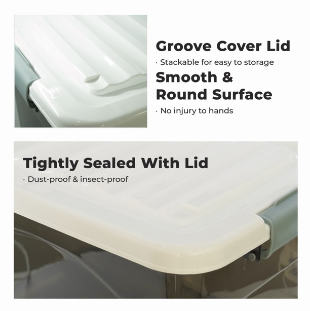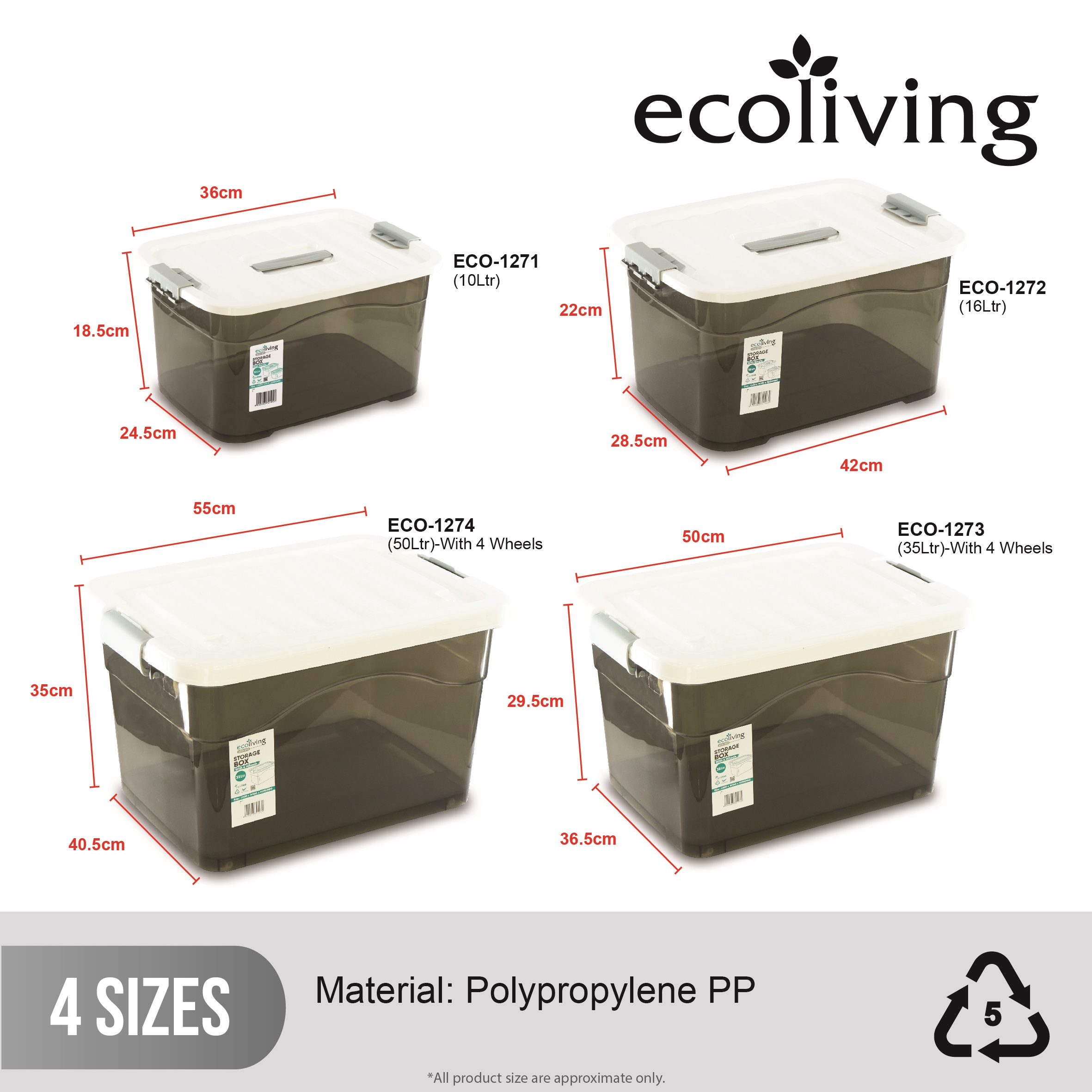 ECO LIVING 35,50L Stackable Storage Box With Wheels, Space Organizer, Kotak Penyimpanan, ECO-1273, ECO-1274