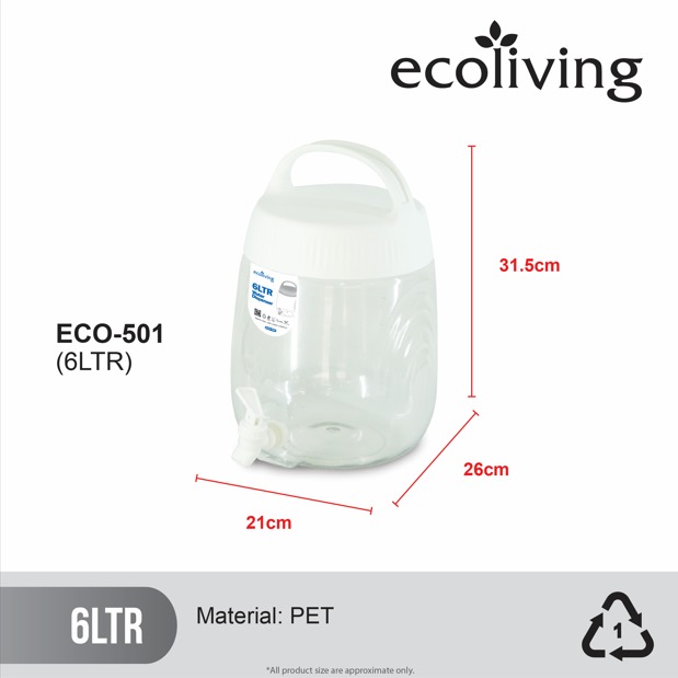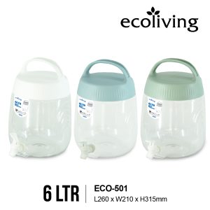 ![[RAMADAN RAYA 2026] ECO LIVING 6L Water Juice Detergent Dispenser With Stand, Bekas Air Tong, ECO-501 ECO-501SD - Image 2](https://www.ee-jia.com/v2/wp-content/uploads/ECO-501-Dimension-WH-01.jpeg)