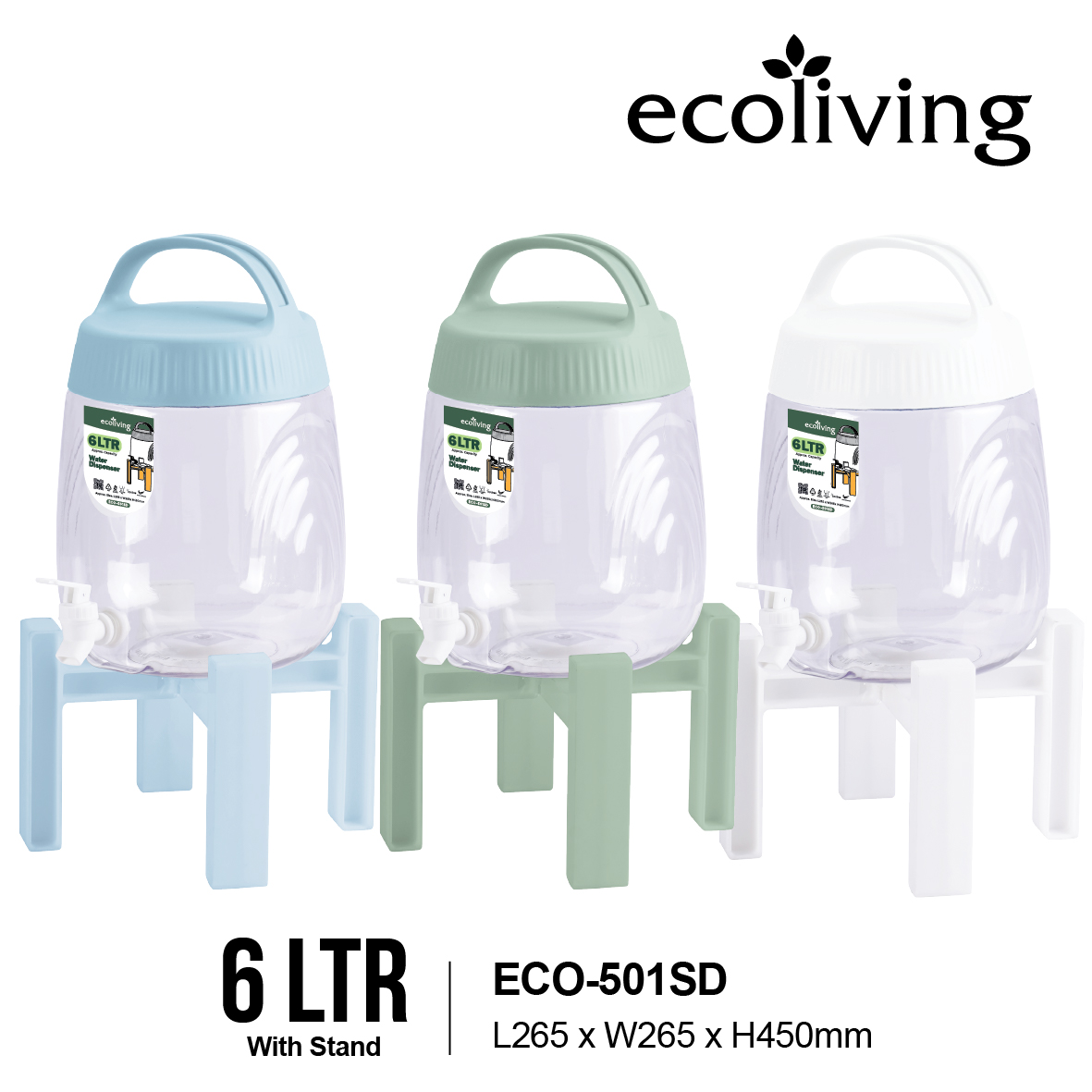 ![[RAMADAN RAYA 2026] ECO LIVING 6L Water Juice Detergent Dispenser With Stand, Bekas Air Tong, ECO-501 ECO-501SD - Image 5](https://www.ee-jia.com/v2/wp-content/uploads/ECO-501-P1-P2-WH_P2.jpeg)