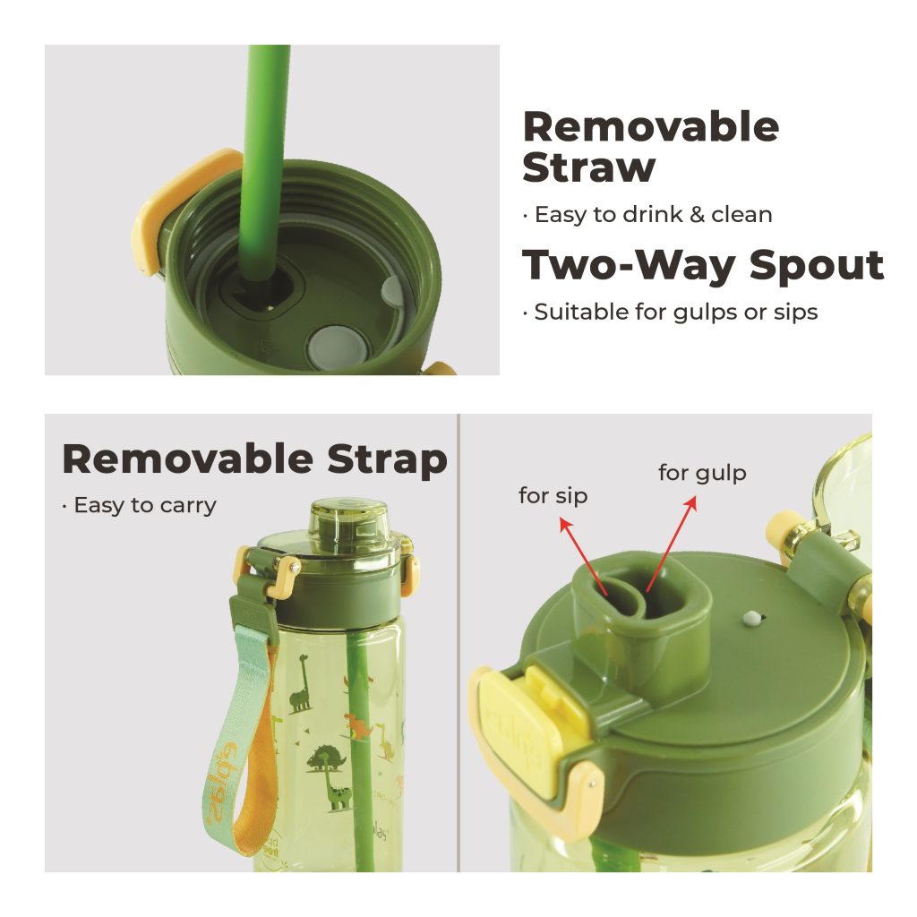 EPLAS KIDS 650ml 2 Way Spout One Touch Kids Water Bottle W/Straw Handle&Safety Lock,Graphic Bottle,Botol Air,EGI-650BPA