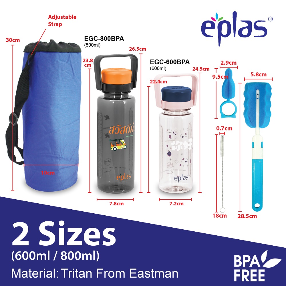EPLAS GRAPHIC 600/800ml Water Bottle With Handle, Drinking Bottle, Water Tumbler, Botol Air, EGC-600BPA, EGC-800BPA