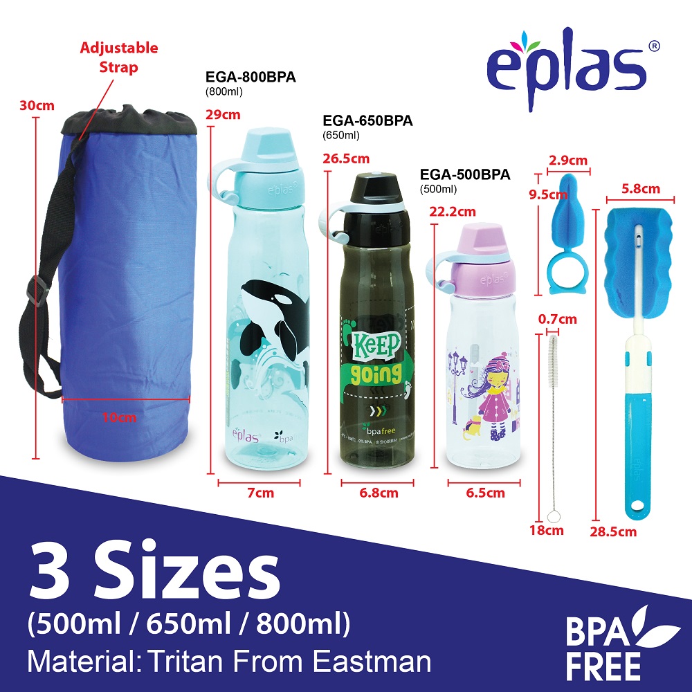 EPLAS GRAPHIC Water Bottle With Handle, Kids Drinking Bottle, Water Tumbler, Botol Air, EGA-500BPA,EGA-650BPA,EGA-800BPA