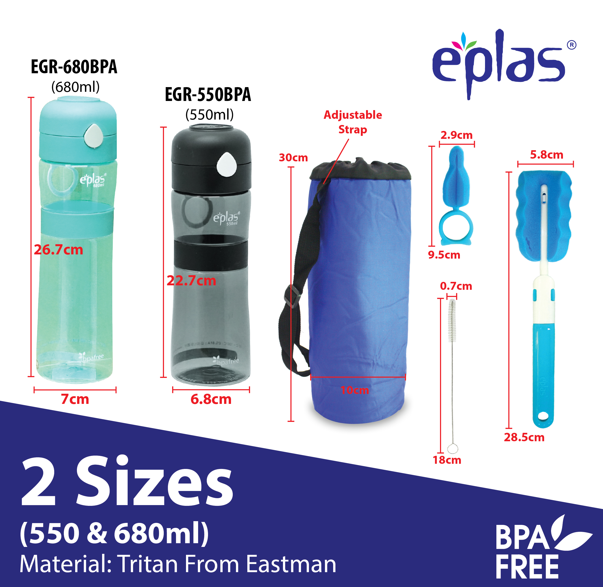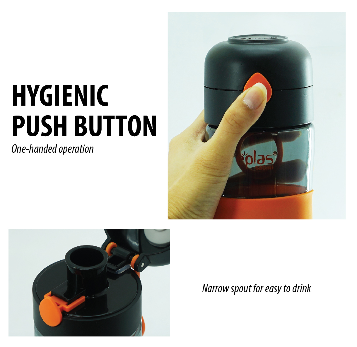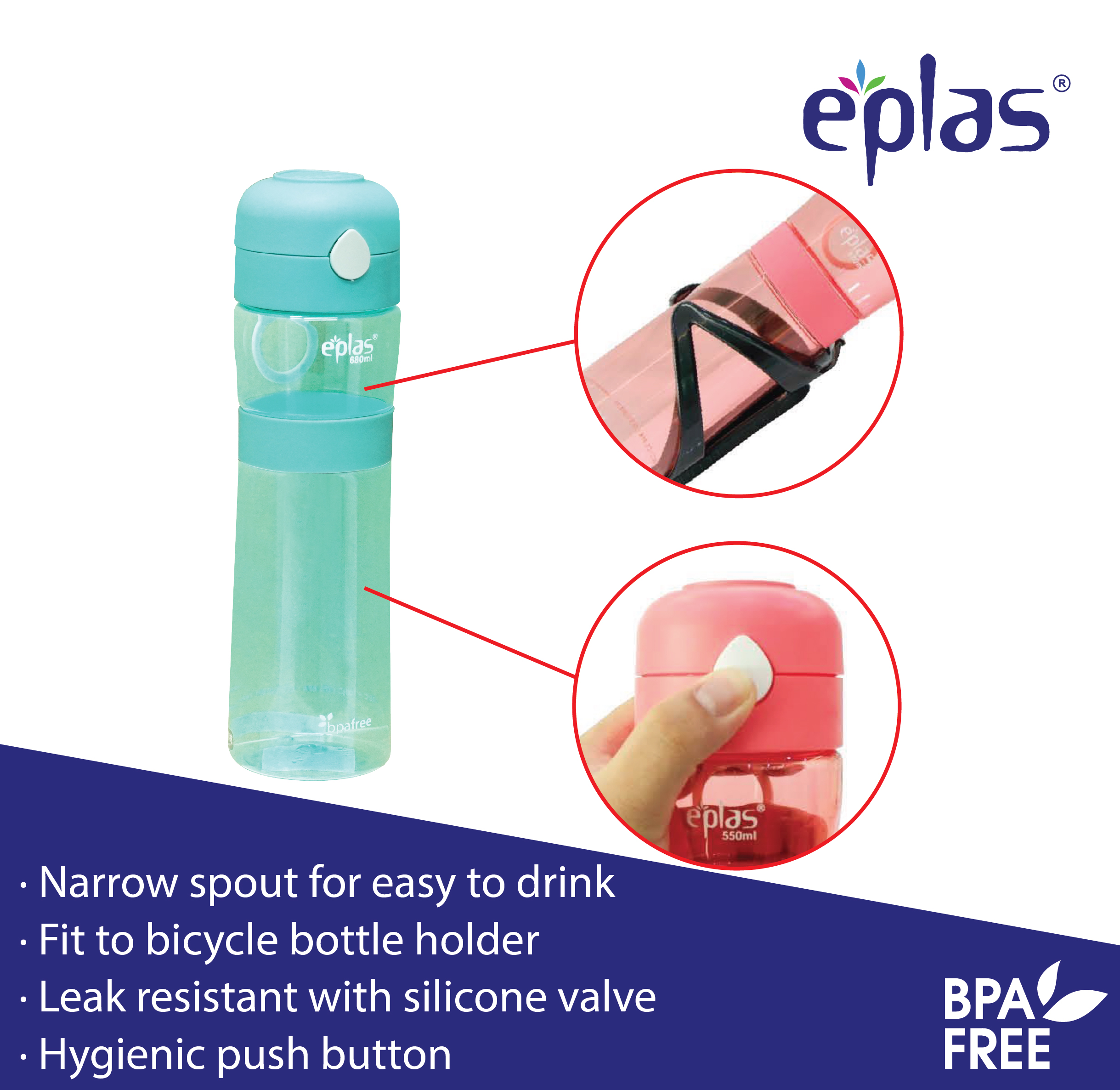 EPLAS MODERN 550/680ml Sport Water Bottle,Silicone Holder,Push One Touch Button Tumbler,Botol Air,EGR-550BPA,EGR-680BPA