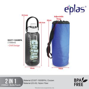 EPLAS OFFER PACK 2in1 1500ml Water Bottle with Bag Pouch Set,Drinking Water Tumbler,Botol Air,BPA Free,EGST-1500BPA/EG-B