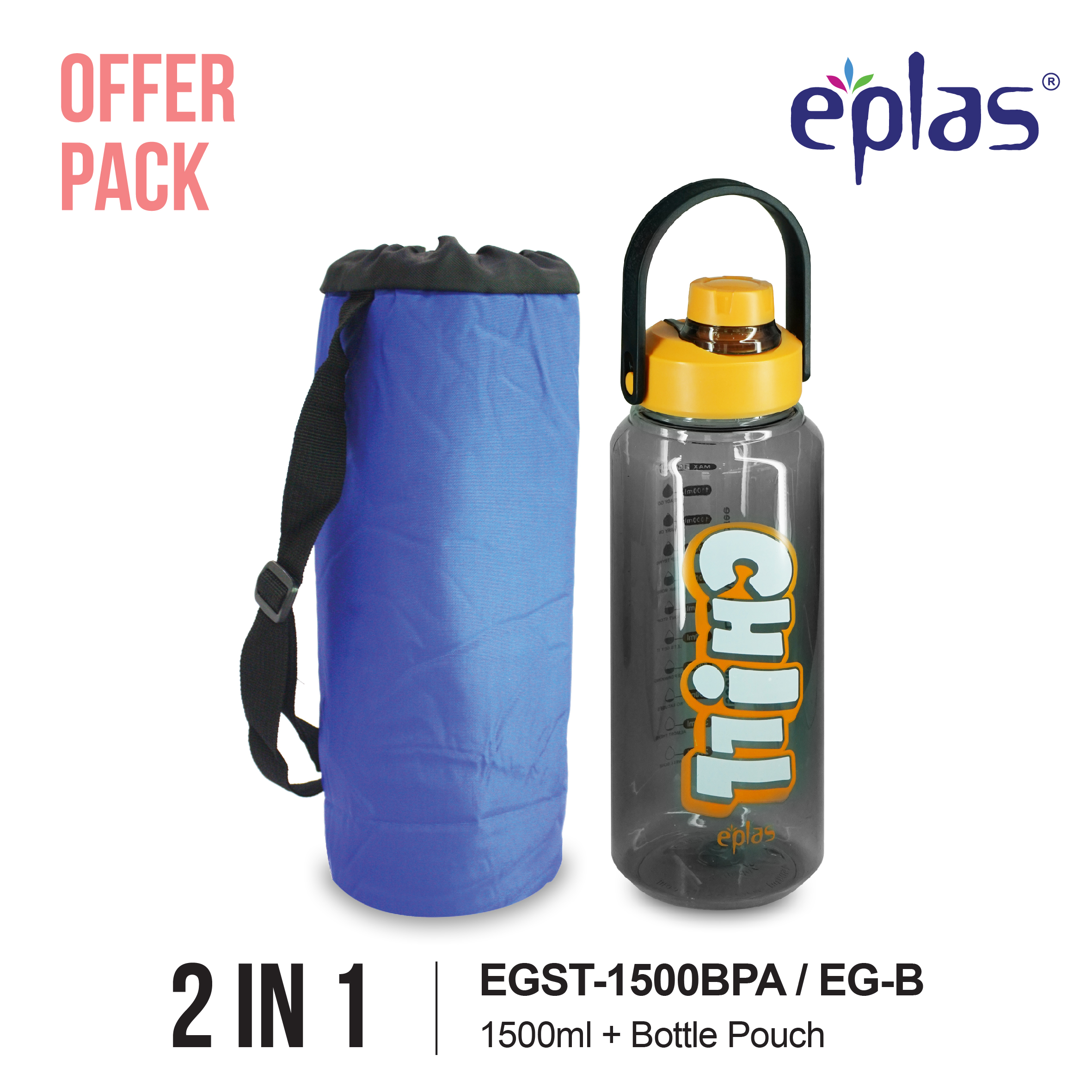 EPLAS OFFER PACK 2in1 1500ml Water Bottle with Bag Pouch Set,Drinking Water Tumbler,Botol Air,BPA Free,EGST-1500BPA/EG-B
