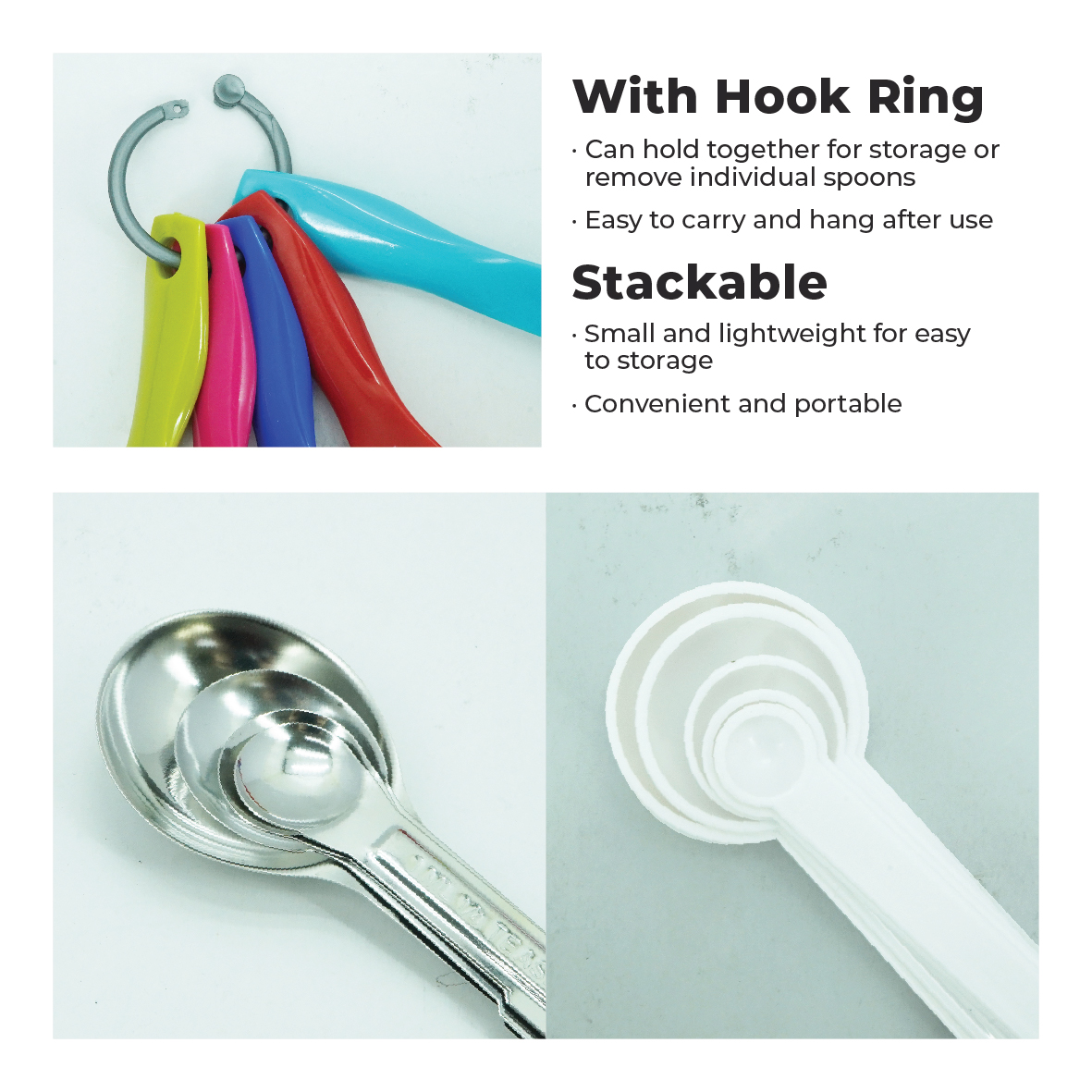 HOME PERFECT 4 In1 Measuring Spoon Cup Set W/Measurement&Hook Ring,Sudu Pengukur,WY-8921, WY-9906