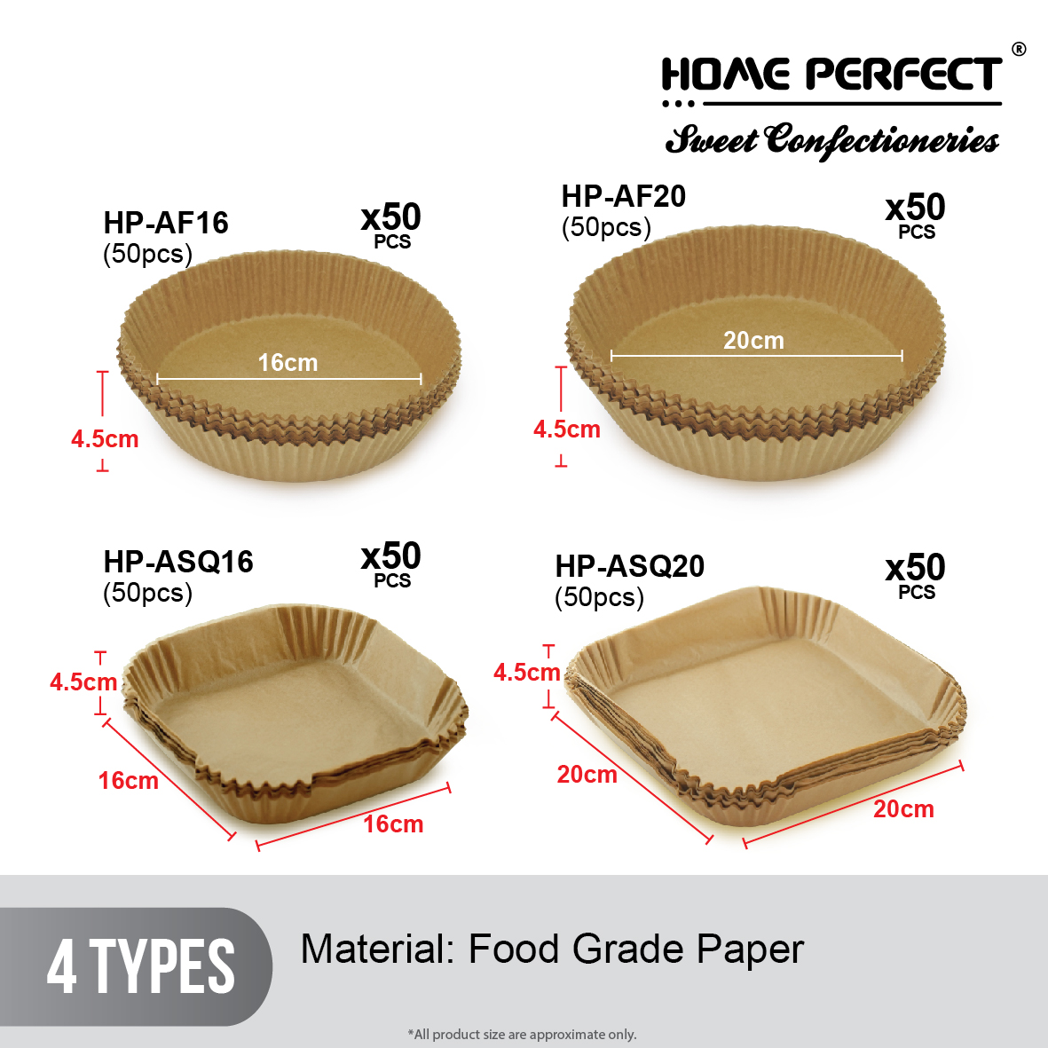 These oil-proof parchment paper are designed with a round bowl shape, which do not need to tear, fold, cut, nor bend, and you can directly put it in when you are ready to cook. Its heightened edge 4.5cm can protect the side of fryers and prevent food from sticking to them.