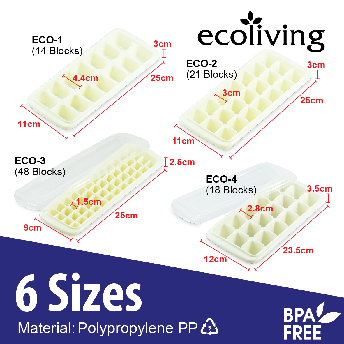 ECO LIVING 14/18/21/48 Blocks Rectangle/Square Ice Cube Maker W/Cover, Kiub Ais Beku, ECO-1, ECO-2, ECO- 3, ECO-4